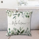 Bring nature indoors with this elegant throw pillow! Featuring eucalyptus and tropical leaves with a custom script monogram, it's suitable for a greenery-inspired space.