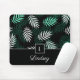 Elegant Monogram Green Leaves Botanical Pattern Mouse Pad
