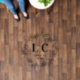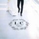 Elegant wedding floor decal featuring the couples monogram initials inside a leaf border.