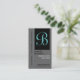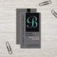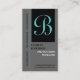 Elegant monogram plain business cards, featuring your monogram in an elegant font in turquoise on black grey/gray background. Professional looking business cards with a sober yet elegant layout great for a manager, designer, an investor, realtor, salesman, engineer, accountant, financial consultant, insurance, publisher, translator, advertiser, clerk and more. tba