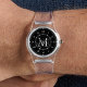 Has heft and feel of expensive stainless steel quartz watches. Good band with safety catch. I removed links, which is easy because engraved arrows show direction to push the linking pins. As always by this seller, the image (a railroad logo) is a perfect reproduction of my emailed image, and is precisely spaced and aligned.