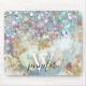 Elegant Modern Holographic Glitter Monogram Personalized Name Purple Gold Galaxy Space Mouse Pad