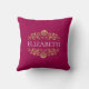 An elegant and chic hot pink and gold flourish monogram throw pillow. Add your name between the gold floral flourish on the front. Designed for you by Blackberry Boulevard.