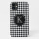 Classy monogram houndstooth pattern iPhone 6 case. Monogrammed cover with cute hounds tooth check design. Custom background color or black and white. Stylish dogtooth print with name initial letter. ie K for Kate, Kelly, Karen, Kevin, etc. Elegant chic gift idea for Birthday or Christmas.