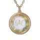 Elegant Monogram Initial Abstract Gold Marble Gold Plated Necklace.My design features abstract liquid marble stone texture in yellow, blue, green, and gold. Elegant Monogram Initial