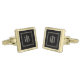 These elegant gold-plated square cufflinks are for groom, father of the bride, fraternity formal, graduation, prom-- and ready to be personalized for that special person. Easily change the pearl color initials using the Template provided. Three finishes available. The design is premium finish rhodium plating over brass body. High shine resin dome over design area for a refined, glossy look. See "About" for more information.