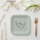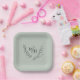 Elegant Monogram Laurel Wreath Sage Wedding Paper Plates