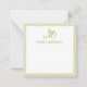 Elegant Monogram Light Green Gingham Personalized Note Card