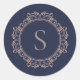 Elegant Monogram Modern Classic Insignia Sticker Seal. Beautiful stickers with gray text on midnight Navy Blue adorned with a lovely single letter monogram in a copper blush colored circular insignia frame. Personalize with your monogram initial. We invite you to visit our store, Austen & Grace, to view matching products and more. Please contact us if you require any assistance.