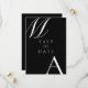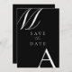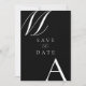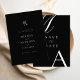 Modern Black and White Wedding Save the Date. Features bold monogram typography and minimalist graphic design.