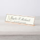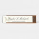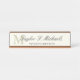 Neutral, elegant nameplate with your initial in a pale golden color against creamy white under your name and title in so dark brown it's almost black.