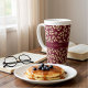Elegant Monogram Name Leaf Daisy Pattern Burgundy Latte Mug