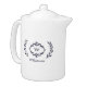 Elegant Monogram Name Modern Wreath Blue White Teapot