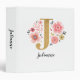 Elegant Monogram Name White Pink Floral Script 3 Ring Binder