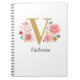 A beautiful, feminine monogrammed pink floral notebook, featuring pink flowers and a faux gold monogram letter V. Personalize the notebook by adding your name underneath the monogram. Makes a fun gift for a friend or for a bridesmaid gift. Designed for you by Blackberry Boulevard.