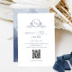 Elegant RSVP online wedding enclosure card, with a QR code and an exquisite hand-drawn monogram showcasing the couple's initials. Attractive back in navy blue hues watercolor wash. Part of our "Navy Blue Watercolor Botanical Monogram Wedding" collection with a variety of coordinating products.