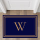 Chic dark navy blue area rug featuring your monogram initial in elegant gold typography and gold borders. You can change the colors of the rug, monogram initial and borders to match your decor by editing in the design tool.