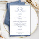 Elegant Monogram Navy Blue Watercolor Wedding Menu