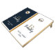 Personalize this elegant monogram navy blue and white cornhole set with your custom monogram initial, names and date.