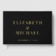 Elegant black wedding guest book featuring your names in large classic serif typography, monogrammed in your choice of real gold, silver or rose gold foil, and your wedding date. Personalize with your photo on the back and a custom title on the spine.