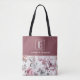 Elegant Monogram Pink and Purple Floral Botanical Tote Bag