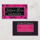 An elegant chic business card design for your eyelash specialty company. Hand-lettered script typography overlaid on a double pink border frame with a hot pink lush rose background. The additional line below for your title or company name. Multiple lines on the back to personalize with all your contact details. A beautiful yet simple design in pink and black that looks professional and modern.