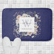 Elegant Monogram Pretty Beige Blue Flowers Floral Bath Mat