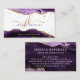 Modern, stylish professional business card with purple agate and gold glitter sparkle accents personalized with an elegant calligraphy script typography monogram initials and name. ASSISTANCE: For help with design modification or personalization, color change, resizing, transferring the design to another product or if you would like coordinating items, contact the designer BEFORE ORDERING via the Zazzle Chat MESSAGE tab below or email makeitaboutyoustore@gmail.com.