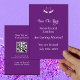 Overlaying this majestic backdrop is the exquisite white script typography, meticulously crafted to add an air of refinement and grace. The contrast between the boldness of the purple background and the delicate intricacy of the typography creates a striking visual effect, drawing the eye to the essential details of the card.