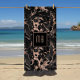 Elegant Monogram Rose Gold Black Marble Beach Towel