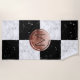 Elegant monogram rose gold black white marble beach towel