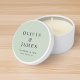 Elegant sage green wedding mini candle favors featuring your monogram names and your wedding date and location in classic serif typography. You can change the font size for shorter or longer names in the design tool if desired.