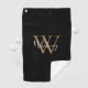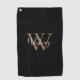 Simple elegant black gold and white script monogram golf towel. You can personalize the name, monogram and customize the font and colors to create your own unique design. Designed by Thisisnotme©