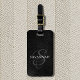 Elegant grey black printed leather luggage tag with your custom monogram in a swirly script calligraphy font with your name in a modern black and white type design.