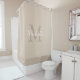 Add a touch of timeless elegance to your bathroom with our custom monogram shower curtain, personalized with your name and initial in a beautifully simple and modern design. Featuring the name and initial in a blend of modern and script fonts with beige and white text set against a beige background, these colors can be changed if preferred. Whether you're updating your own space or gifting to someone special, this piece combines style and individuality in one stunning accent.