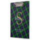 Enjoy your ancient Scottish Sutherland Clan connection by displaying the family’s green and blue tartan and your personal monogram and name on this handsome clipboard. Suitable for home, school, office or leisure activities, this clipboard will keep you organized as well as sharing a bit of your family's tradition.