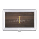 Elegant Monogram Script Rustic Wood Look Business Card Case