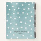 An elegant blue metallic background with white polka dots decorates this notebook. Other colors available. Personalize it with your name on the front and back. Makes a great gift. Designed for you by Blackberry Boulevard.