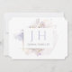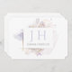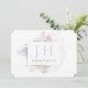 An elegant delicate pretty monogrammed note card with soft earthy watercolor washes and wildflowers. Simple and delicate. Pink and lilac hues and curved edges.