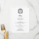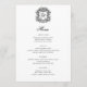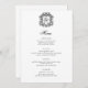 This elegant black and white 5 x 7 wedding menu card features an ornate crest at the top with the monogram initials of the bride and groom in fancy formal script font. Find matching products in the collection, or message me through Zazzle Chat for more products and design tweaks.