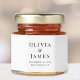 Minimal honey jars for your wedding that feature your monogram names, wedding date and location in classic serif typography. You can change the size of the font for shorter or longer names in the design tool if desired.