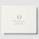 This elegant wedding guest book features a custom photo, and a simple laurel wreath framing the couple's initials. Inspired by 1920s invitations, it blends classic formality with modern flair, using a traditional serif font, vintage calligraphy script and a clean arrangement. Personalize the template with the couple's names, monogram, photo, date and location. Perfect for capturing guests' special messages and fun memories. Printed colors: sage green, and off-white, ivory cream. Shop the collection for matching stationery and supplies for sale online!
