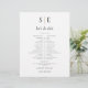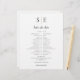This stylish wedding schedule-timeline can be personalized with your monogram initials and wedding details in chic typography. Designed by Thisisnotme©