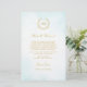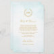 This elegant timeless classic wedding design combines classic laurel wreath enclosing Bride’s and Groom’s monograms and a light turquoise watercolor ombre. Gold lettering (gold is not real gold but color). Elegant font combo.