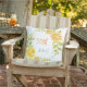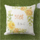 Elegant Monogram Yellow Flower Wreath Wedding 50th Outdoor Pillow