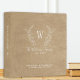 Custom family monogram, name, and established year, elegant beige leather (PRINTED, not REAL LEATHER TEXTURE) with white typography estate planning documents personalized binder with vintage style family crest monogram.