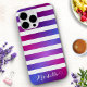 Elegant Monogrammed Blue Purple Pink White Stripes Case-Mate iPhone Case