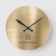 Elegant Monogrammed Gold Brushed Metallic Round Clock