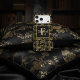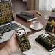 Featuring a stunning metallic gold-look floral damask pattern set against a deep matte black background, this design exudes timeless luxury.