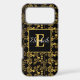 Elegant Monogrammed Gold Floral Black Damask Case-Mate iPhone Case